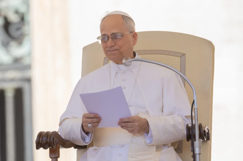 Pope Leo XIV addresses pilgrims gathered in St. Peter’s Square at the Vatican for his general audience on Wednesday, May 28, 2025. / Credit: Daniel Ibañez/CNA
