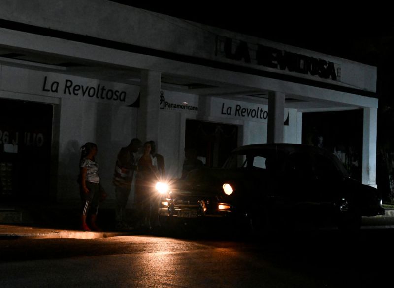 People use a car to light themselves on a dark street during a blackout in Bauta municipality, Artemisa province, Cuba, on March 18, 2024. / Credit: YAMIL LAGE/AFP via Getty Images