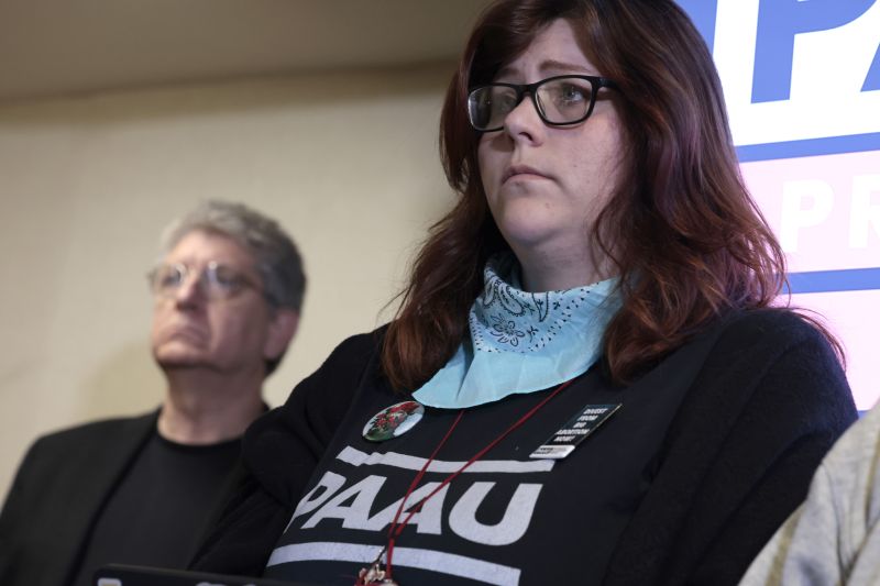 Pro-life activist Lauren Handy listens during a news conference on the five fetuses found inside the home where she and other anti-abortion activists were living on Capitol Hill at a news conference at the Hyatt Regency on April 5, 2022, in Washington, D.C. / Credit: Anna Moneymaker/Getty Images