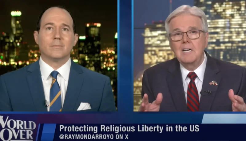 Texas Lt. Gov. Dan Patrick, chair of the United States’ recently created Religious Liberty Commission, talks with Raymond Arroyo on “The World Over” on June 19, 2025. / Credit: “The World Over with Raymond Arroyo”/Screenshot