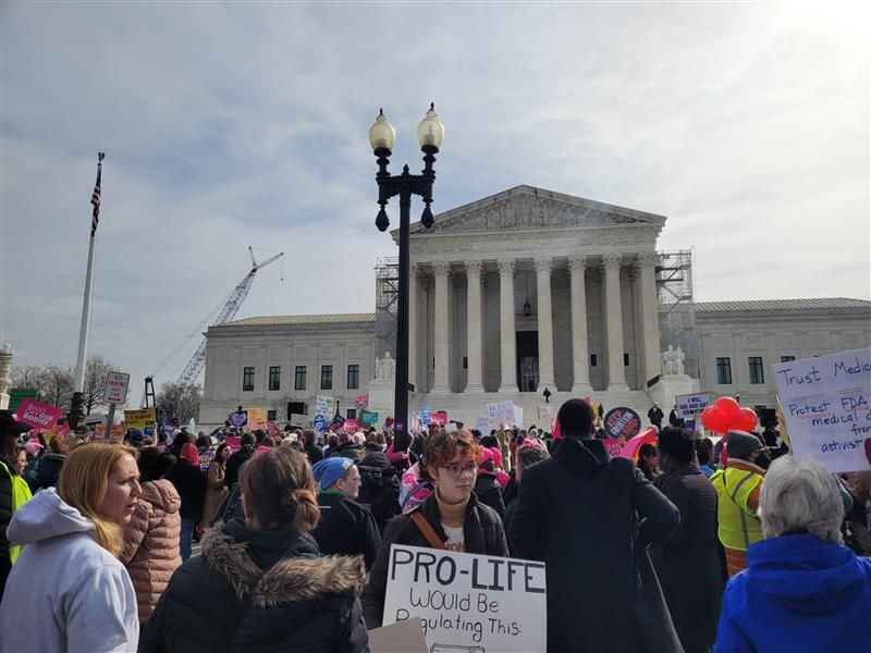 Hundreds of pro-life and pro-abortion demonstrators hold rallies alongside each other as the Supreme Court hears oral arguments in the high-stakes abortion pill case Alliance for Hippocratic Medicine v. Food and Drug Administration, March 26, 2024. / Credit: Peter Pinedo/CNA