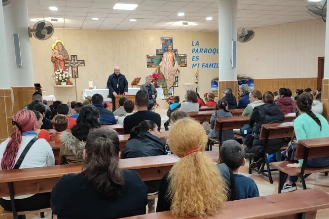 Bishop Santiago Gómez Sierra visits St. Paul Parish in the Diocese of Huelva, Spain, in 2022. / Credit: Diocese of Huelva, Spain
