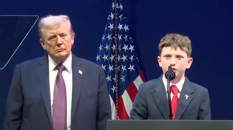 Shane Encinas, 12, shown here with President Donald Trump, was among the students who recounted their experiences facing religious discrimination in American public schools at a Religious Liberty Commission hearing on Sept. 8, 2025, in Washington, D.C. / Credit: Courtesy of U.S. Department of Justice/Screenshot