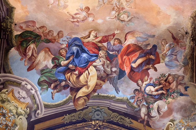 Assumption of the Virgin Mary fresco painting in San Petronio Basilica in Bologna, Italy. / Credit: Zvonimir Atletic/Shutterstock