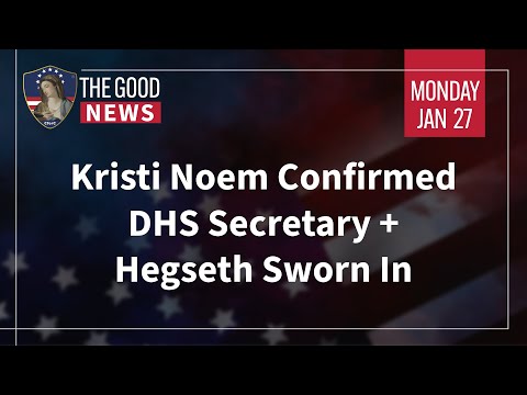 Traditional Catholic PodcastThe Good News – Jan 27th 2025: Kristi Noem Confirmed DHS Secretary, Hegseth Sworn In + More! —A Podcast by: Catholics for Catholics RighteousAdmin9 months ago01 mins Watch Video by Clicking Here —>Read More Post navigation Previous: Watch VP Vance’s Firery Response to the USCCB Condemning Trump’s Immigration Orders. —A Podcast by: Catholics for CatholicsNext: MARCH FOR LIFE 2025 | A Defiant Stand for the Unborn —A Podcast by: LifeSite News