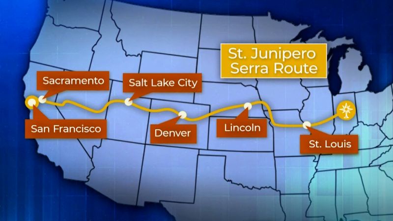 The Serra Route is named after “The Apostle of California,” St. Junipero Serra, whom Pope Francis canonized during a visit to the United States in 2015. Serra was an 18th-century Franciscan priest and missionary who founded mission churches all along the California coast, many of which are still in operation as Catholic churches today.