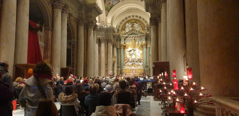 Italian Bishop Antonio Staglianò, president of the Pontifical Academy of Theology and rector of the Basilica of Santa Maria in Montesanto, opened the pilgrimage with a Mass celebration at San Salvatore in Lauro, one of Rome’s 13 Jubilee of Hope churches located near the popular tourist destination Piazza Navona.