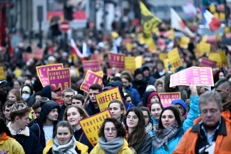 Demonstrators hold pro-life placards during an anti-abortion protest in Paris on Jan. 16, 2022. Abortion in France is legal until 14 weeks after conception. / Credit: STEPHANE DE SAKUTIN/AFP via Getty Images