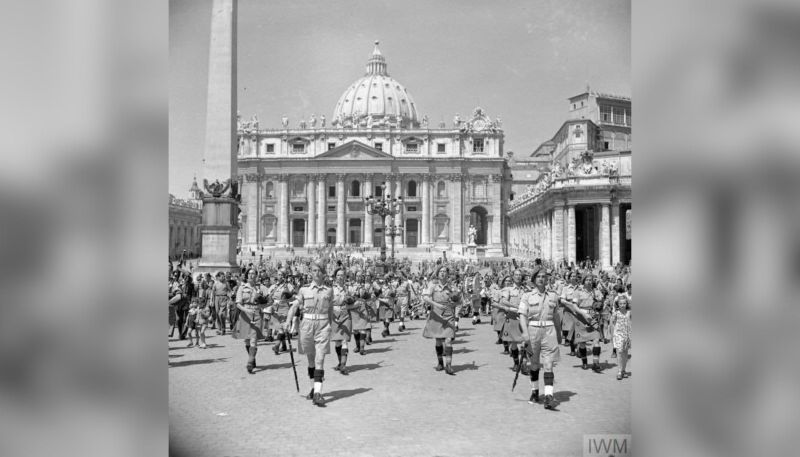 The 38th (Irish) Brigade marches at the Vatican in June 1944. / Credit: Imperial War Museum