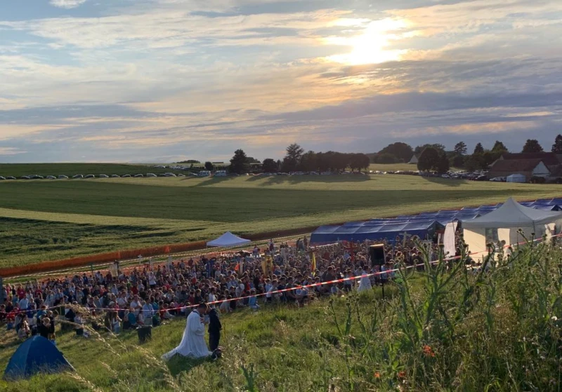 Adoration of the Blessed Sacrament along route of Chartres pilgrimage June 9, 2019. / Credit: Benjamin Crockett/EWTN
