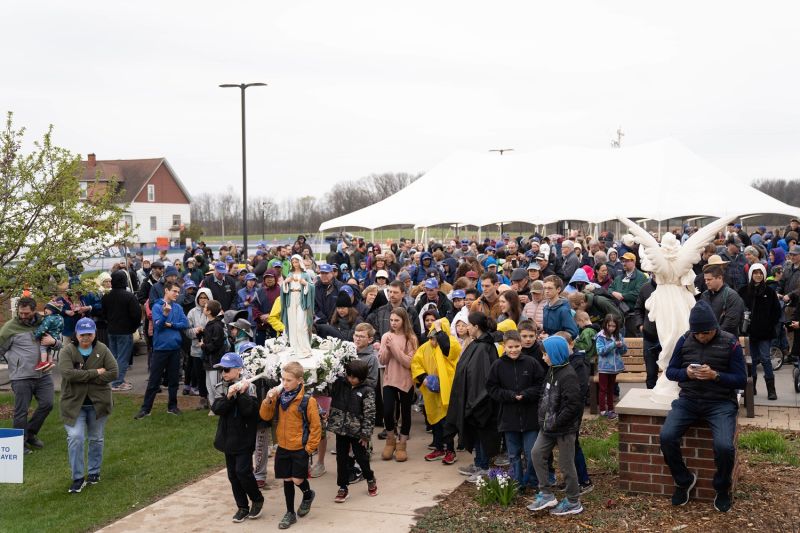 Thousands of pilgrims come together each year to take part in the annual Walk to Mary, which takes place on the first Saturday of May in Wisconsin. The 21-mile pilgrimage starts at the National Shrine of St. Joseph in De Pere, Wisconsin, and ends at the National Shrine of Our Lady of Champion in Champion, Wisconsin. Credit: National Shrine of Our Lady of Champion