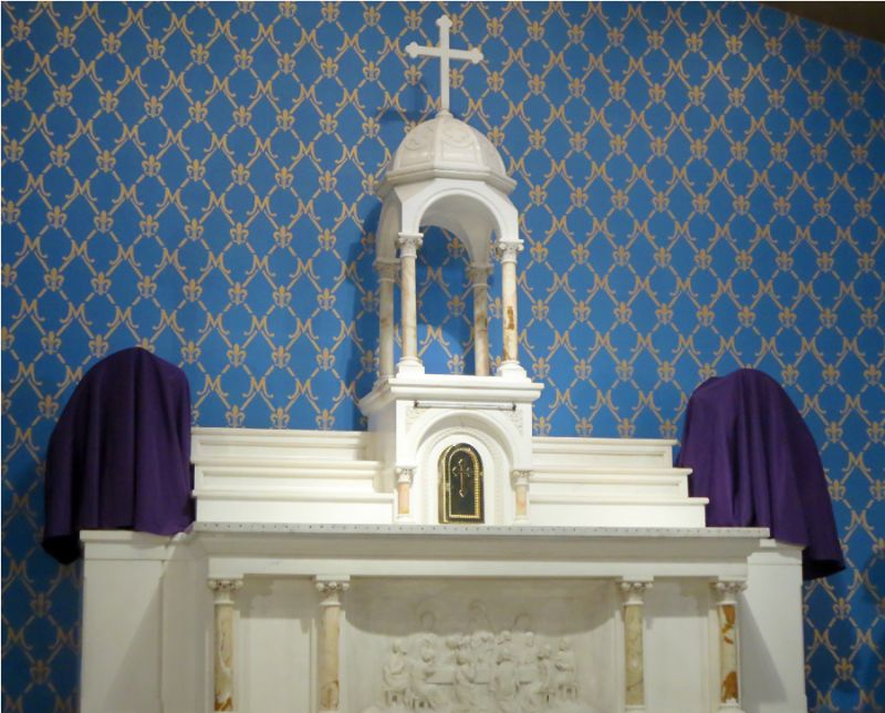 The Blessed Sacrament is not reposed in the church’s tabernacle but in another small chapel.