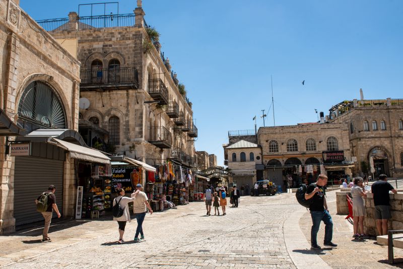 The entrance of Jaffa Gate (interior), one of the main access points to the Old City of Jerusalem, was almost empty around noon on Friday, May 24. According to data from the Israeli Ministry of Tourism, just over 80,000 people entered the country in April 2024, a decrease of 77 percent compared to April 2023. The same decrease was recorded for the first quarter of 2024. / Credit: Marinella Bandini