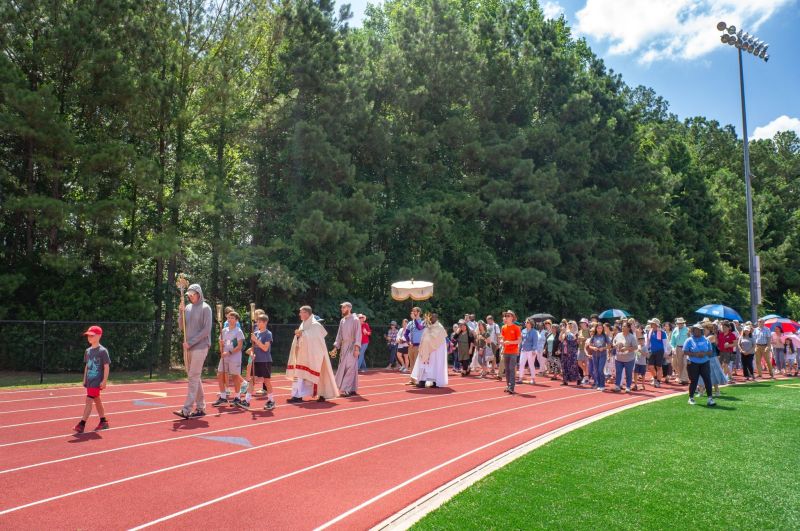 The Juan Diego Route of the National Eucharistic Pilgrimage makes its way into Our Lady of Vietnam Catholic Church in Atlanta. Credit: Issy Martin-Dye